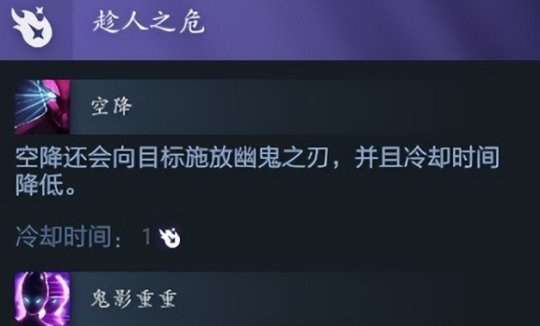 向鬼影锁定的目标放出对应等级的幽鬼之刃,同时空降技能的冷却时间会缩短到1秒。另外要是目标被击杀的话